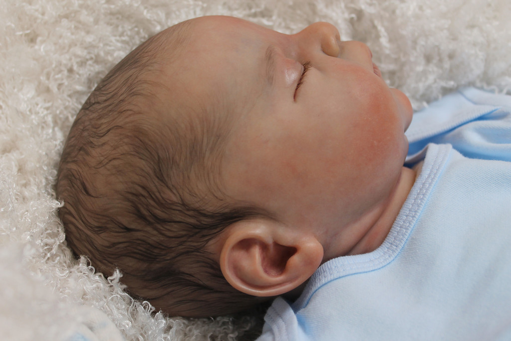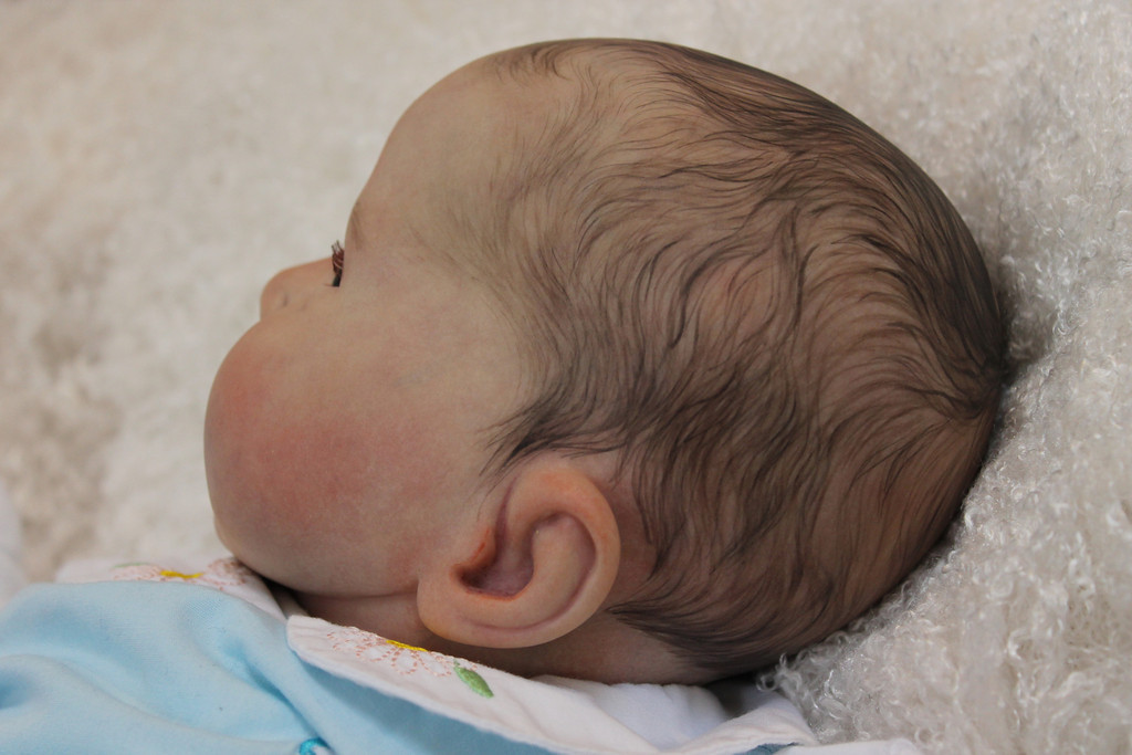 I love that sparse look, don’t get me wrong either. I LOOOOOVE IT! But the stuff I’ve been ogling is exquisite and thick painted hair. And I wanted that. At least, I want that for Sam. I’m going to focus on him here, as I gave “Meg” painted sparse hair, which I do love (more on that momentarily) and “Cozy” is also a sparse newborn hair kit (& I really feel like my vision and reality have matched well on her) but Sam.