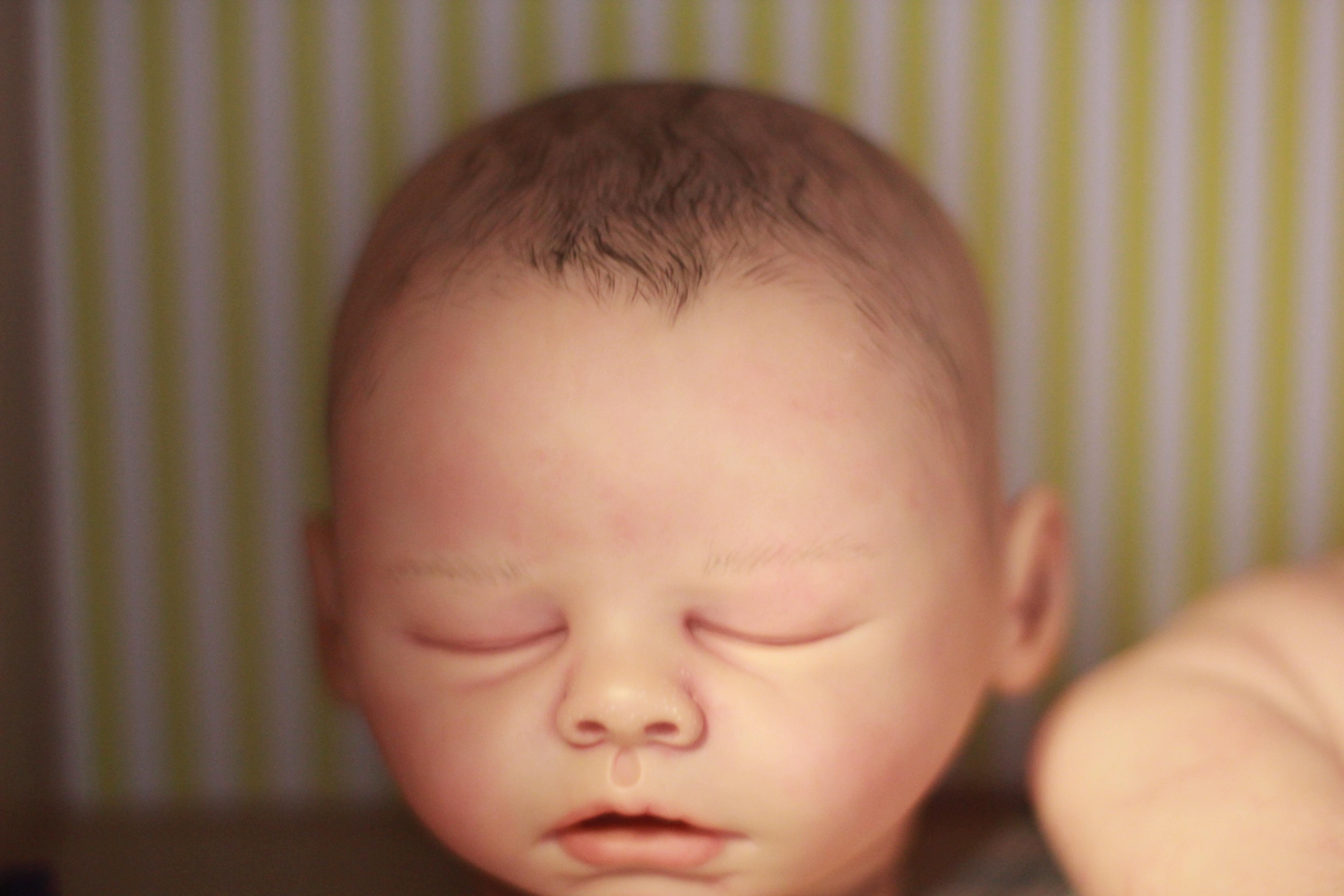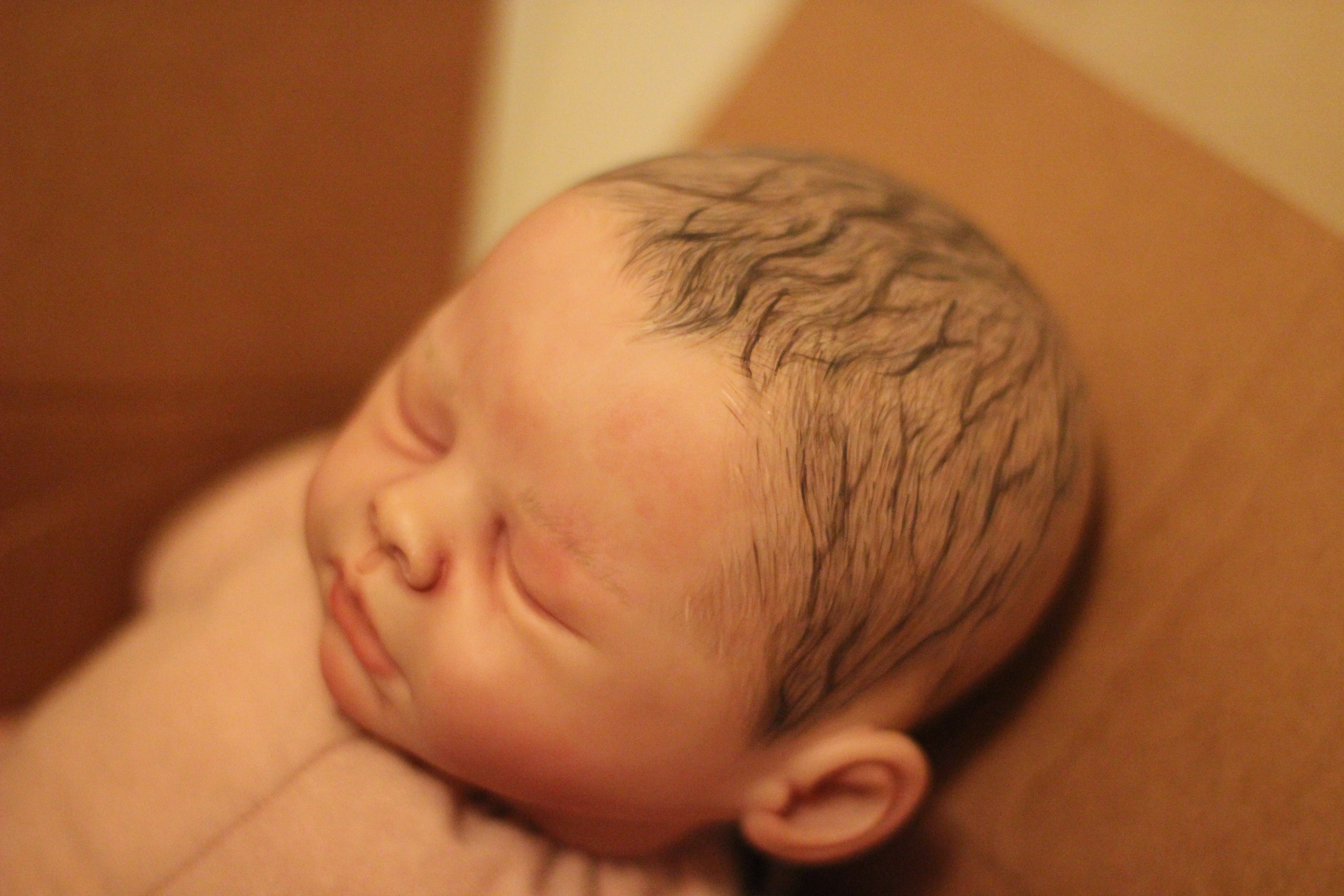 Yes, I ended up with a salt & pepper head (for about 10 mins. I corrected). What did I expect really? I mean, I’m practically brand new to this whole reborning thing, right? And apparently painted hair has the same learning curve as rooted hair. Or worse. I’ve read it’s harder in some instances, to get it looking truly real. Which is why a lot of reborn artists only root. But that only makes me want it that much more.