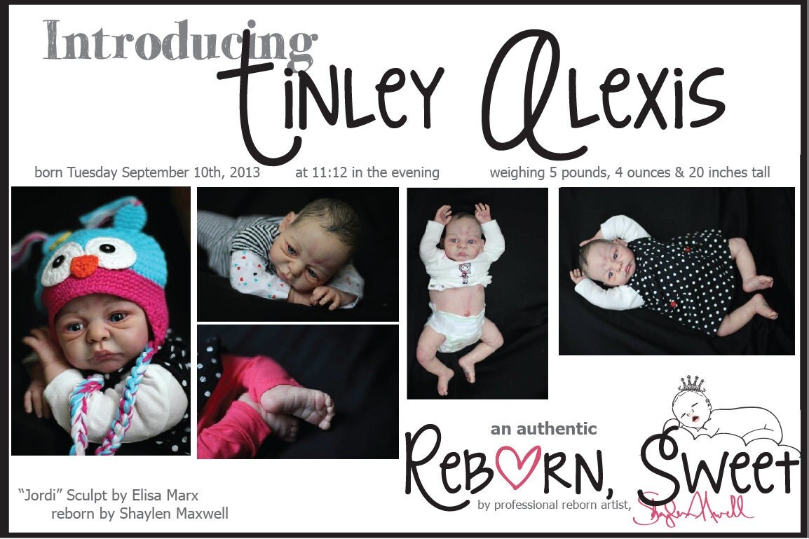 Beautifully micro painted newborn baby girl, Tinley Alexis. From the limited edition “Jordi” sculpt by Elisa Marx. She’s 20 inches long. Full length legs. Cutest jumper layette ever (I want one in my size!) 5lbs 6oz.