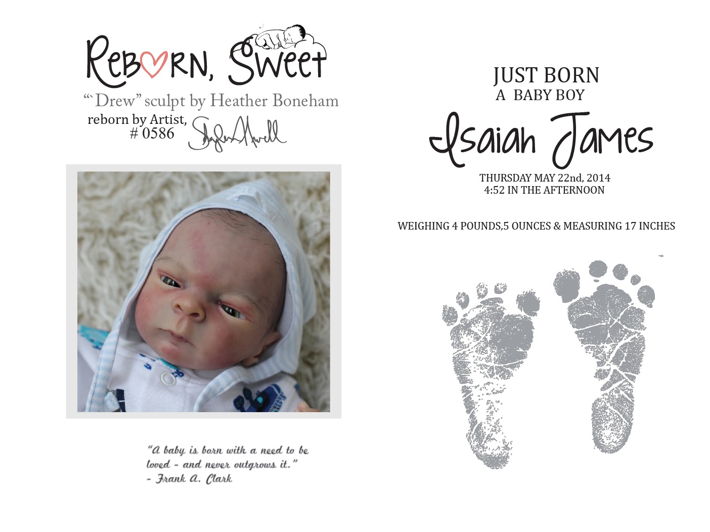 He is just so absolutely amazing! I love soooo much how he came out! He is just sooo above and beyond!!!! Thank you so much from the bottom of my heart for him. He is a very special baby to me, I have named him after my uncle. He will hold a very special place in my heart always. Thank you so much! Thank you so much for all the goodies that you sent home with him! I love soo much all the clothing that you sent home! They are the cutest outfits ever! And thank you so much for the kitty and the booties! I love them so much! I have a feeling that kitty wont be leaving his side. Thank you so much for a gorgeous baby and a amazing box opening! I loved everything!